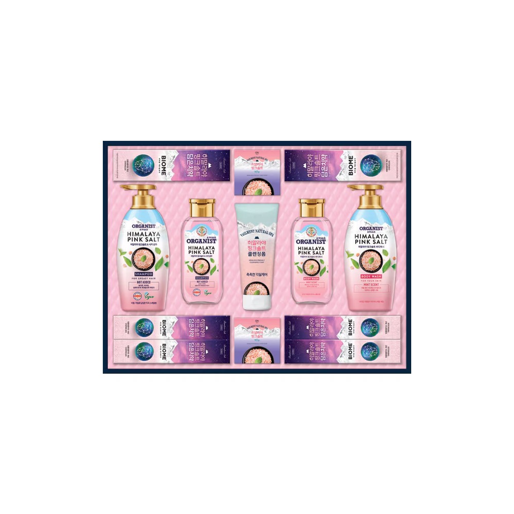 구성품 : 오가니스트 핑크솔트 샴푸 380ml, 온더바디 핑크솔트 바디워시 380ml, 오가니스트 핑크솔트 샴푸 200ml, 온더바디 핑크솔트 바디워시 190ml, 벨먼 핑크솔트 모이스처 폼 200ml, 죽염 히말라야 핑크솔트 바이옴 치약x6개, 온더바디 벨먼 핑크솔트 비누x2개